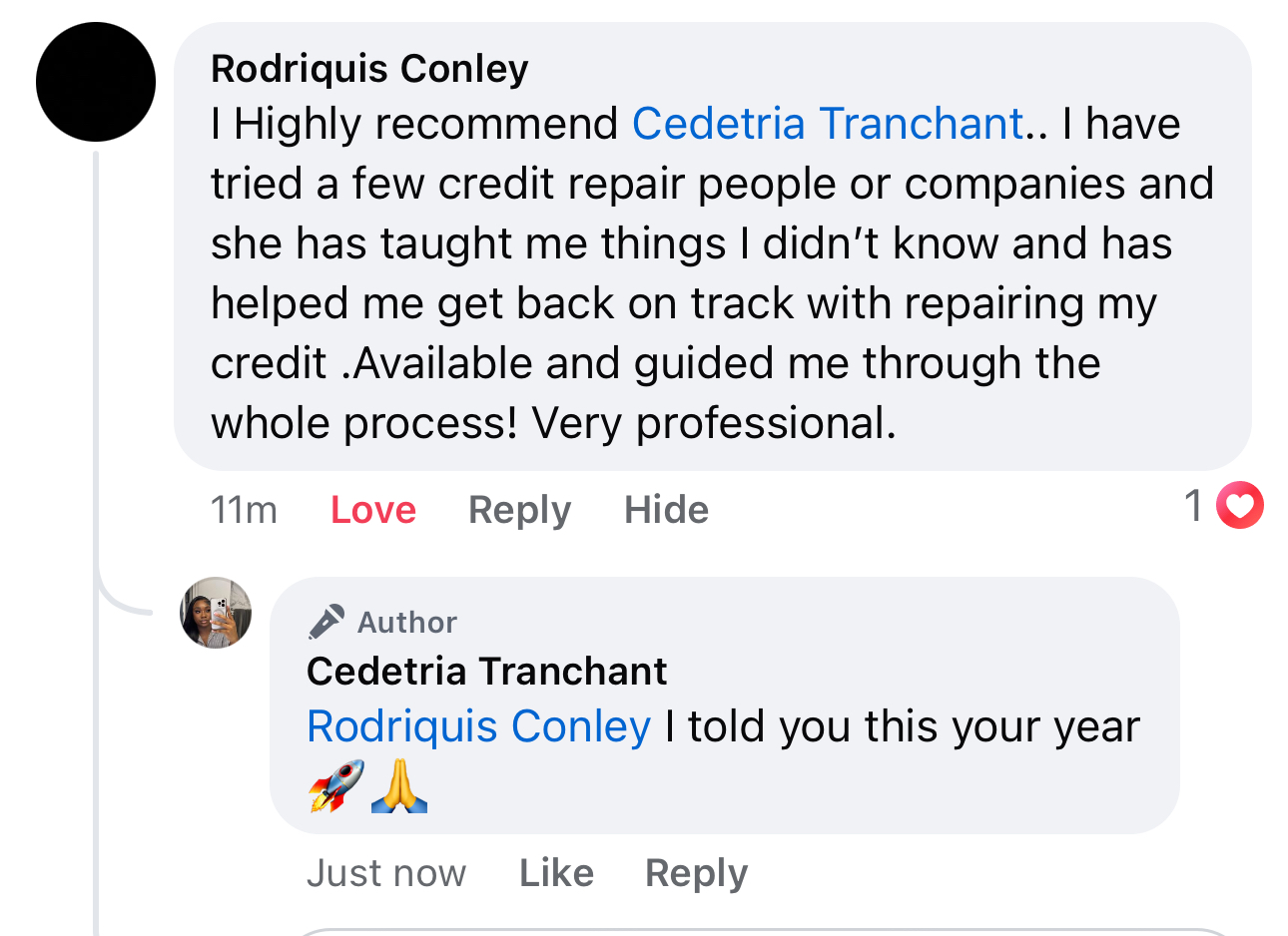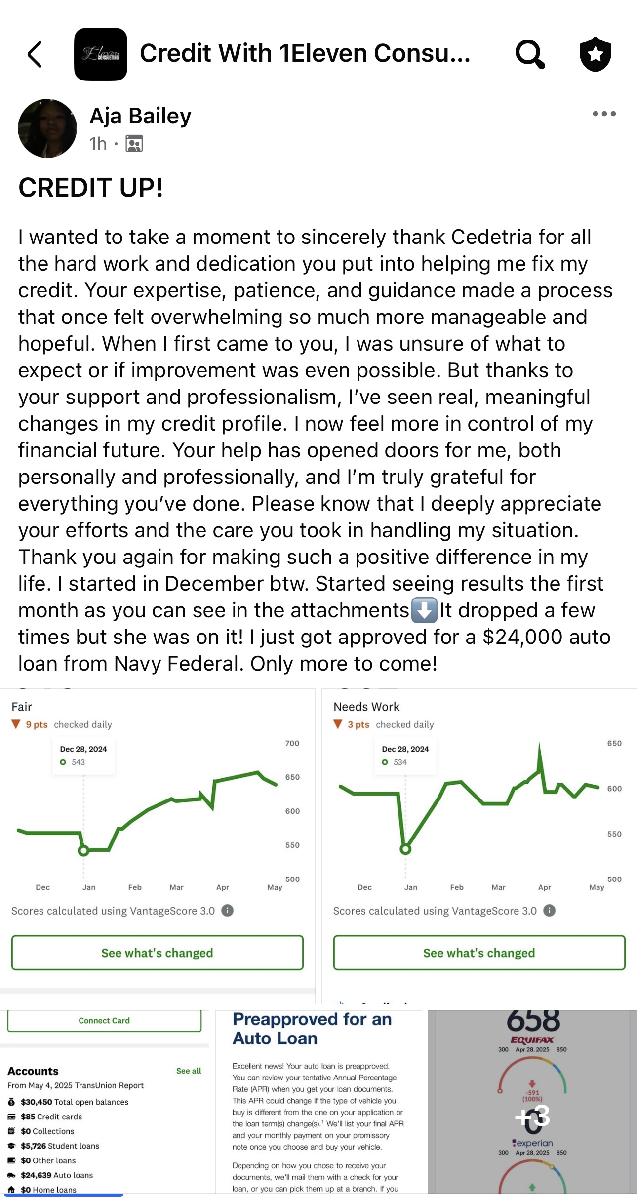 Now, I help others do the same. At 1Eleven Consulting, I work with individuals who are ready to repair their credit, rebuild their finances, and create a stronger foundation for their future. I’ve helped clients break free from debt, secure better lending opportunities, and finally feel in control of their financial lives.