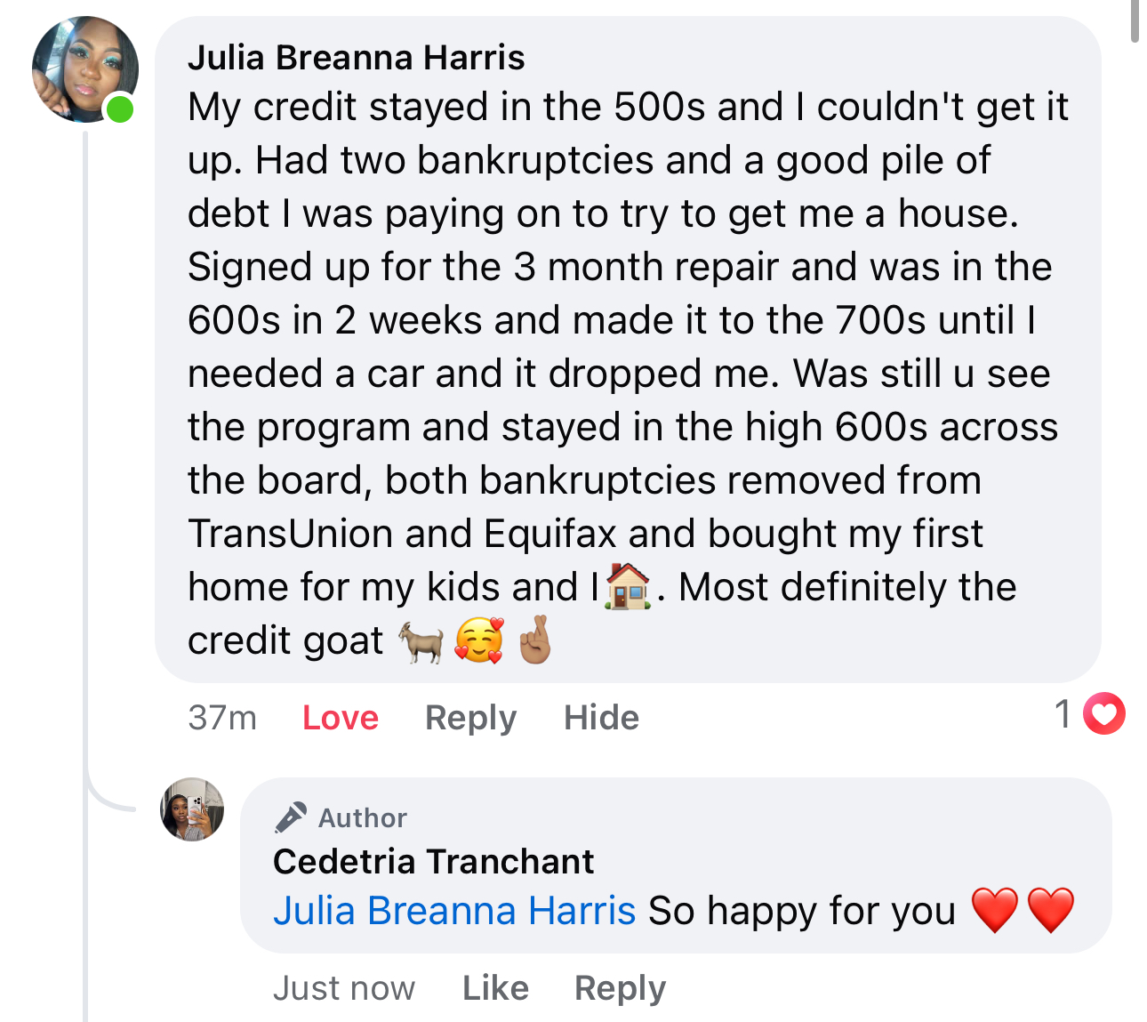 I dug in, learned the strategies, and put in the work—the very same methods I now share with my clients. In less than a year, I took my score from the 400s to the 800s. That change didn’t just improve my credit—it opened the door to a completely different life. I paid off debt, gained financial stability, and leveraged my credit to create cash flow and build wealth through real estate.