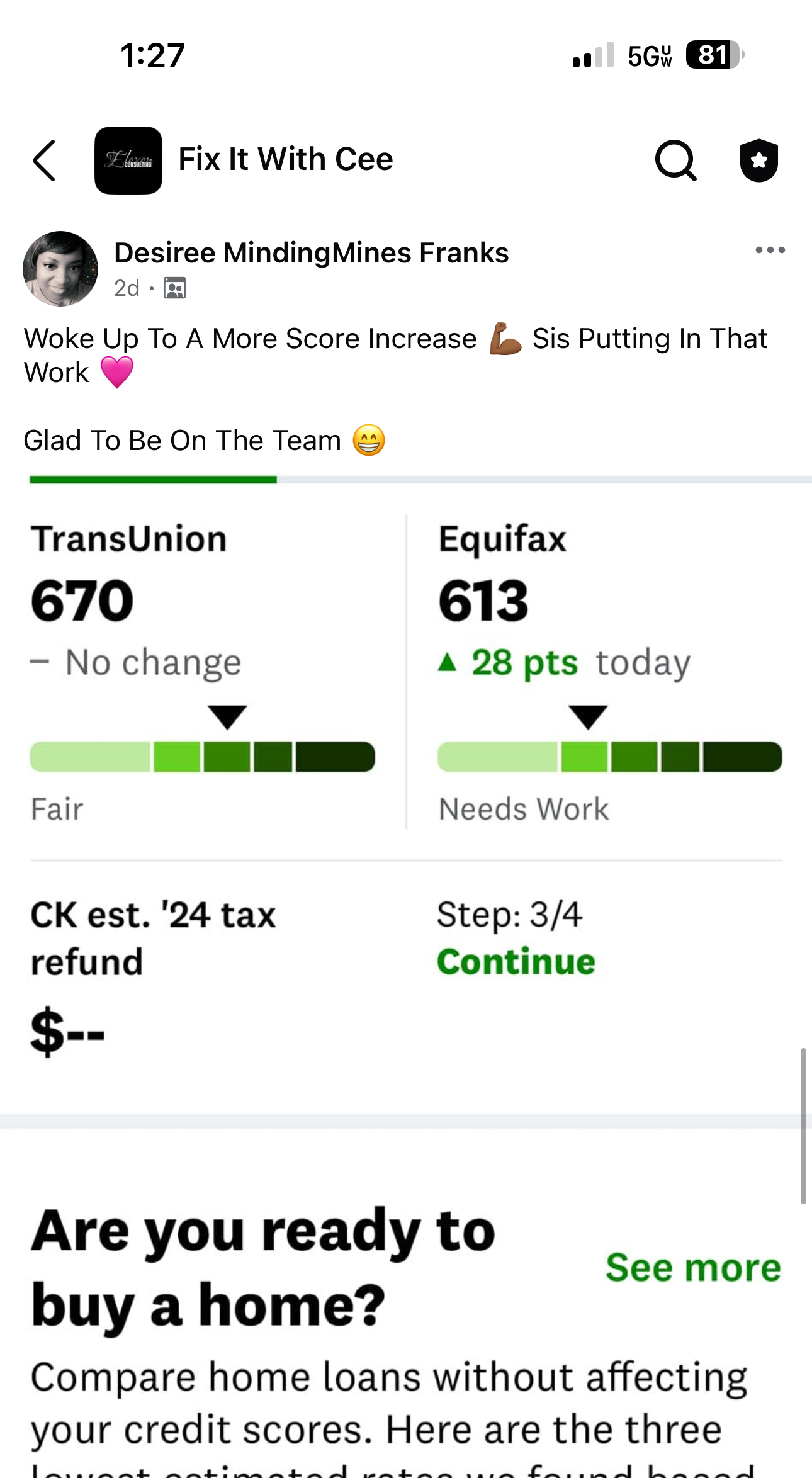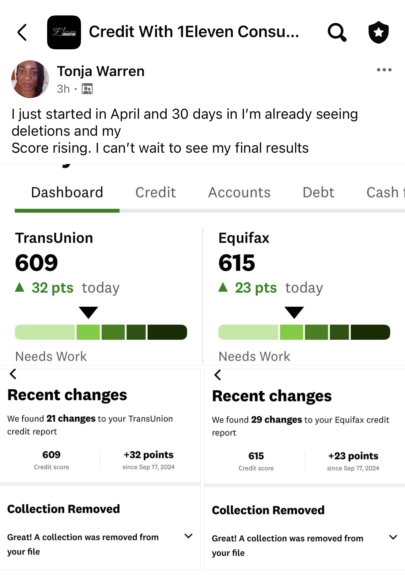Hi, I’m Cedetria Tranchant, founder of 1Eleven Consulting. I know exactly how much great credit can change your life—because I’ve lived it. Not too long ago, my credit score was deep in the 400s. I was weighed down by debt, stressed about money, and constantly hearing “no” from lenders. It felt like my dreams were on hold. But I decided that bad credit wasn’t going to be the end of my story.